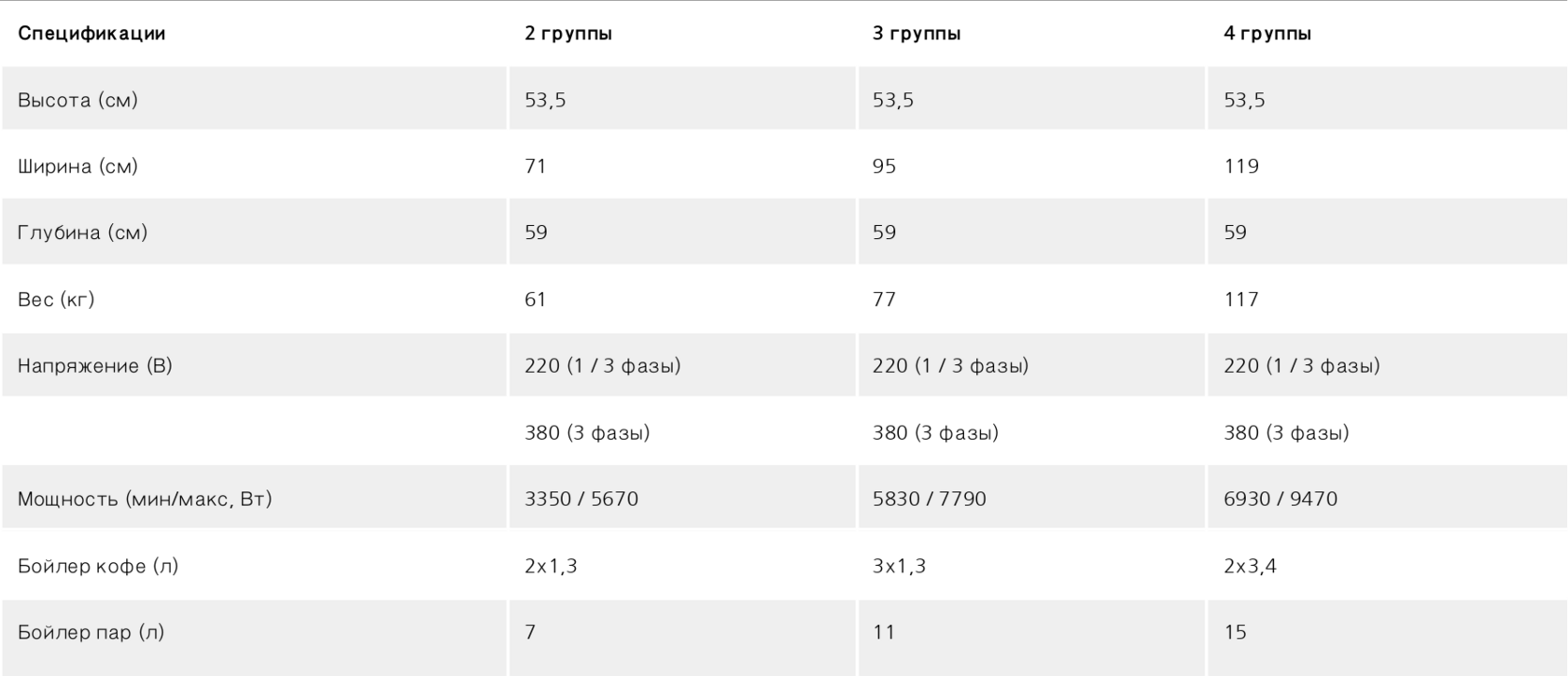 Независимый бойлер для каждой группы и отдельный - для пара позволяют оптимизировать термостабильность.