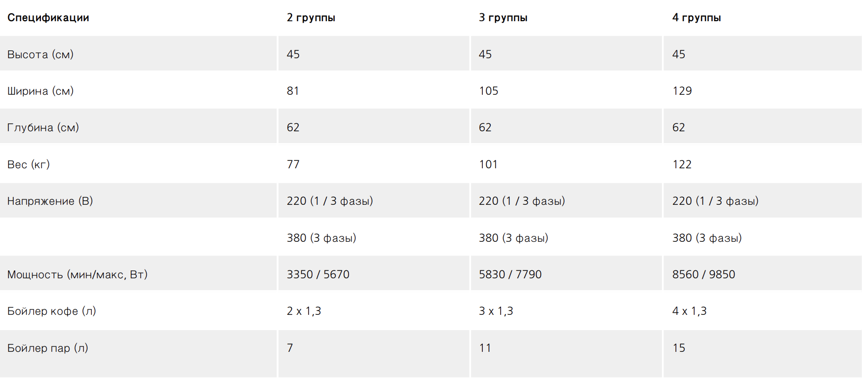 Независимый бойлер для каждой группы и отдельный - для пара позволяют оптимизировать термостабильность.