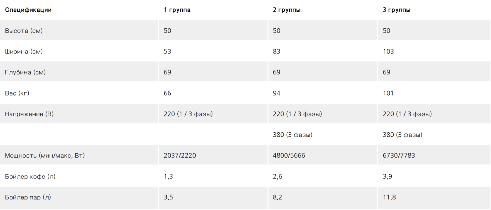 Независимый бойлер для каждой группы и отдельный - для пара позволяют оптимизировать термостабильность.